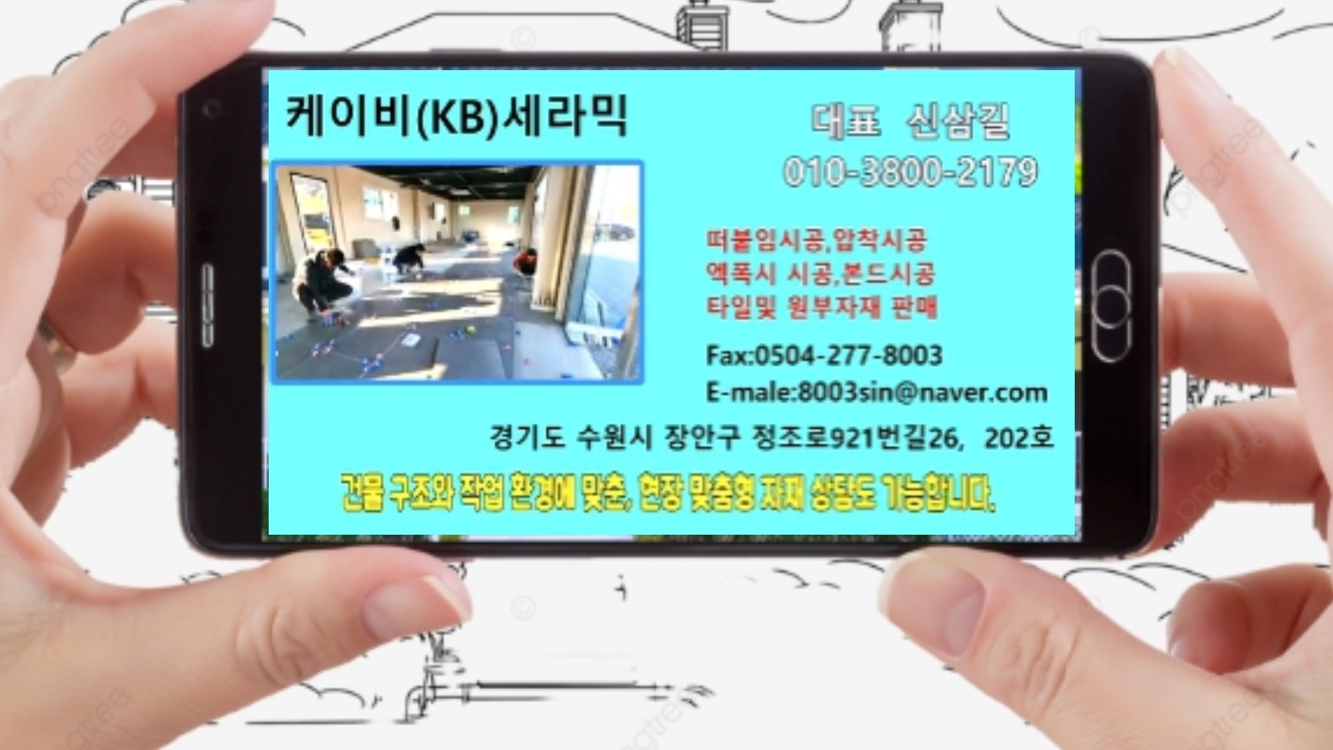 로고, 회사명, 연락처, 전달하실 메시지를 준비해주시면 됩니다. 참고할 디자인 예시가 있으면 더 좋습니다.
